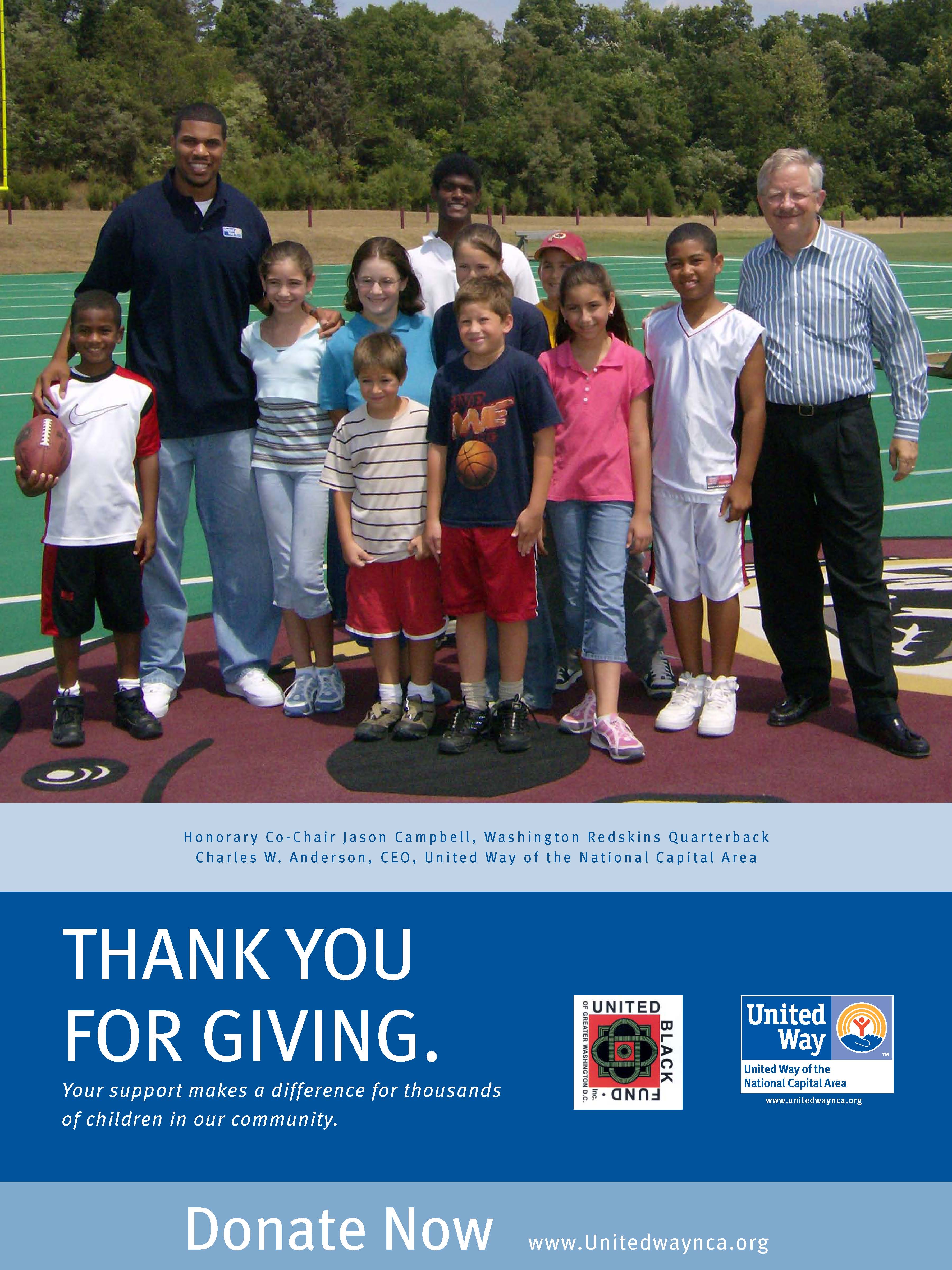 Rockzana Flores along with her sister, Sabrina Flores, and Washington Redskin’s Quarterback Jason Campbell, volunteering to help raise awareness and funds for the United Way’s Annual Campaign.